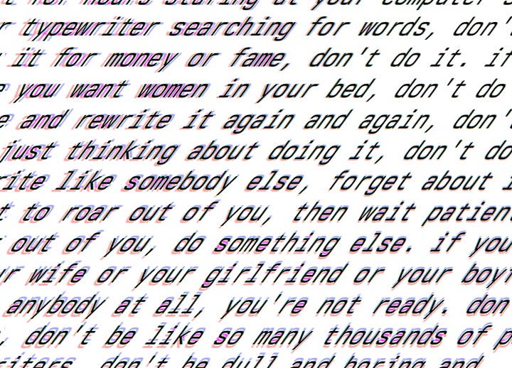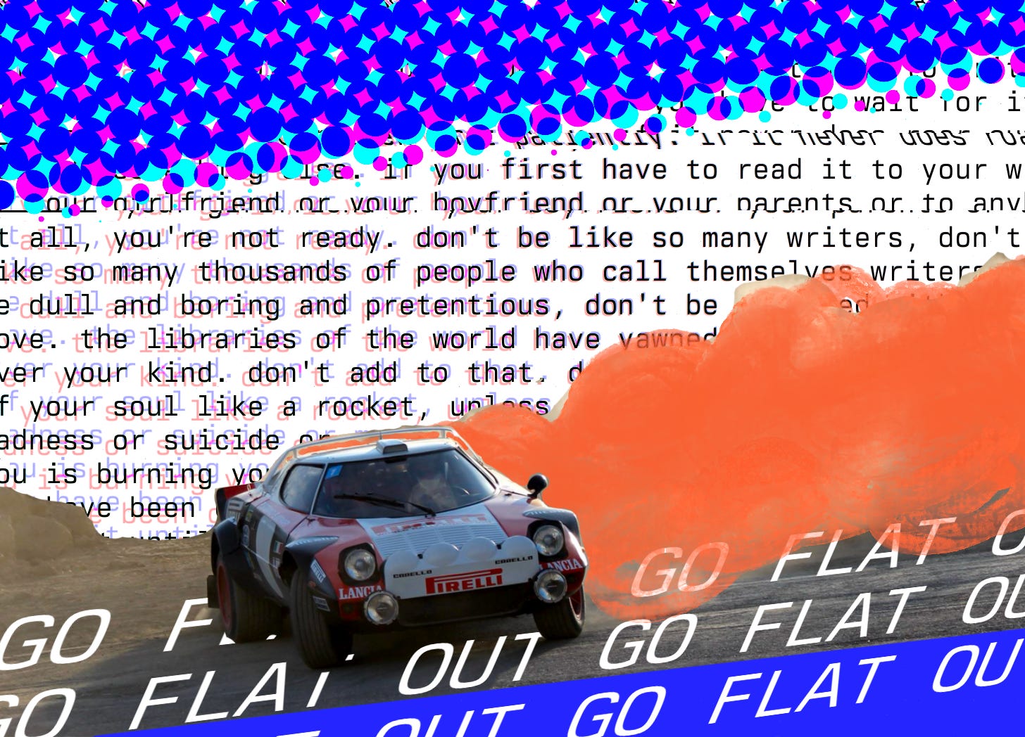 Marinetti focused on the literary, describing a poetic style he called words-in-freedom. Imagine: a friend of yours—bright, eloquent, high-agency—finds himself in a zone of maximum human experience: a war, a natural disaster, a thirty-six hour product launch. He’s telling you how it’s going. How would he talk?