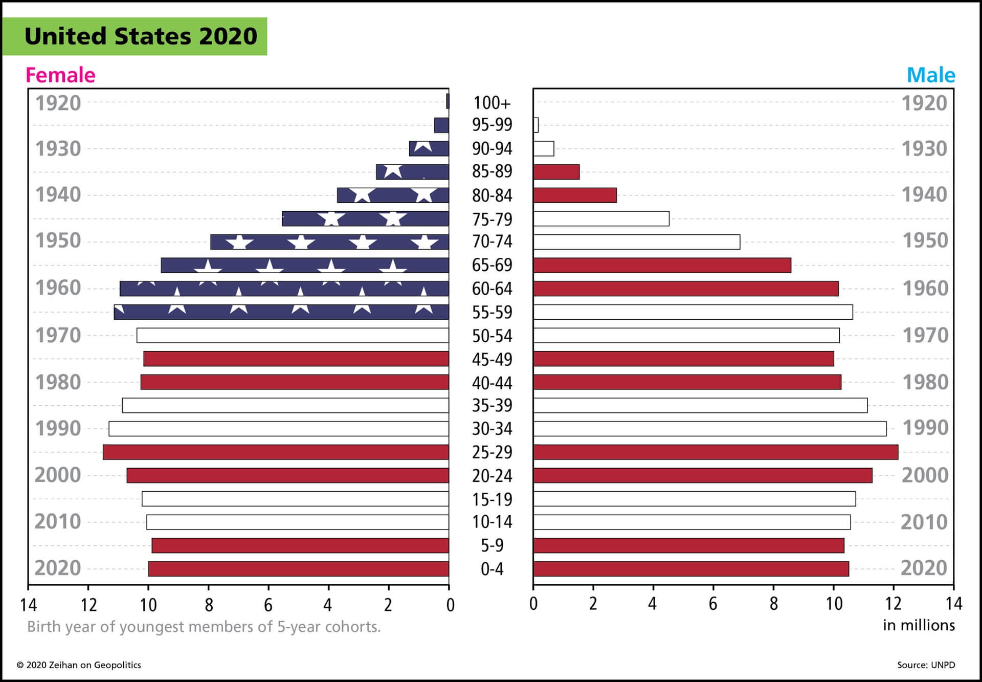 I’m going to steal a chart from Peter Zeihan to explain. This is a 2020 population pyramid for the United States: