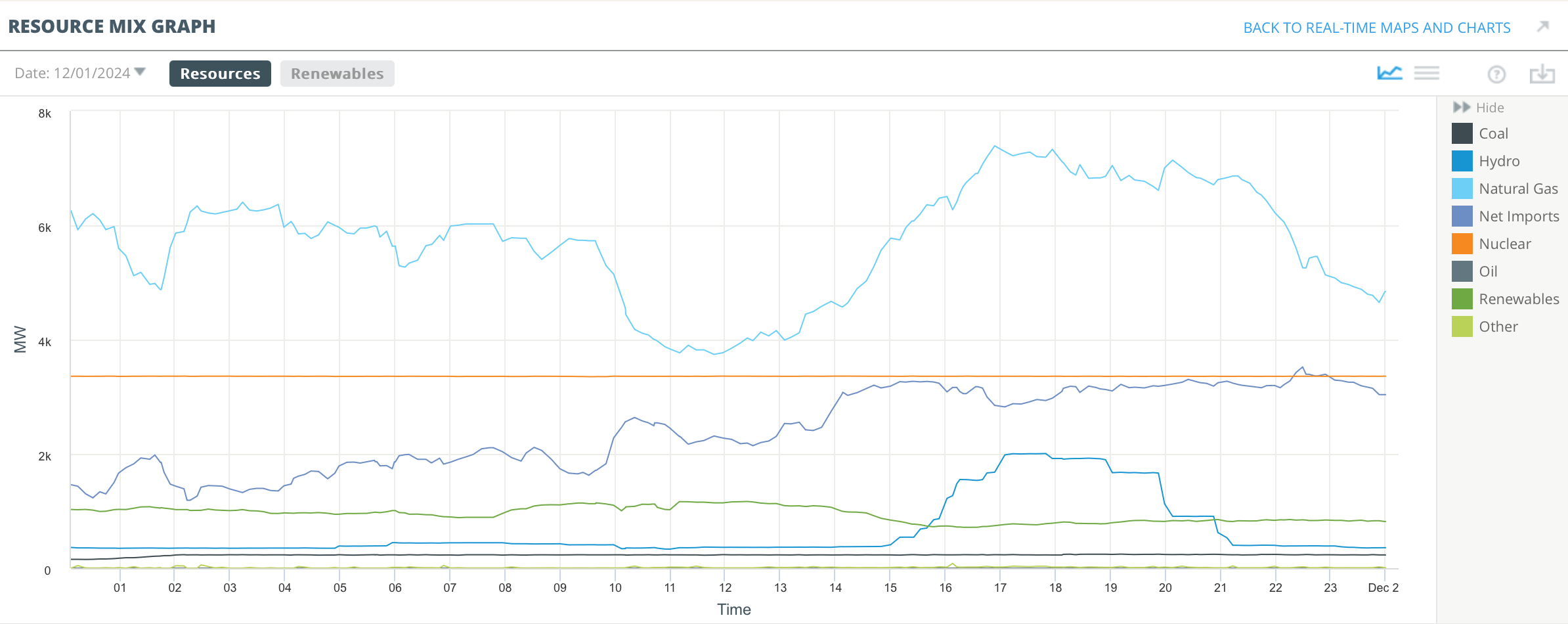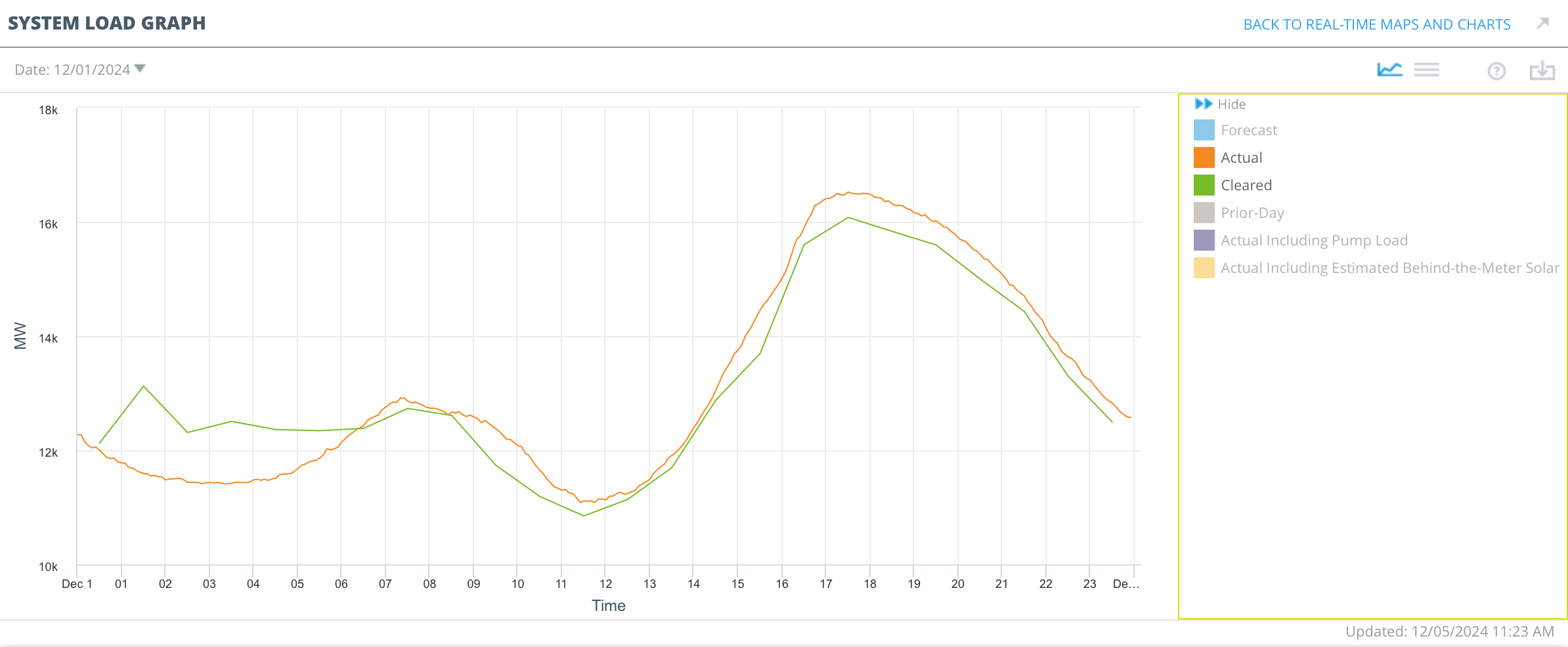 The day-ahead load and weather forecasts, the previous day’s real-time prices, gas and fuel oil spot prices, and an “Is it Winter?” tag