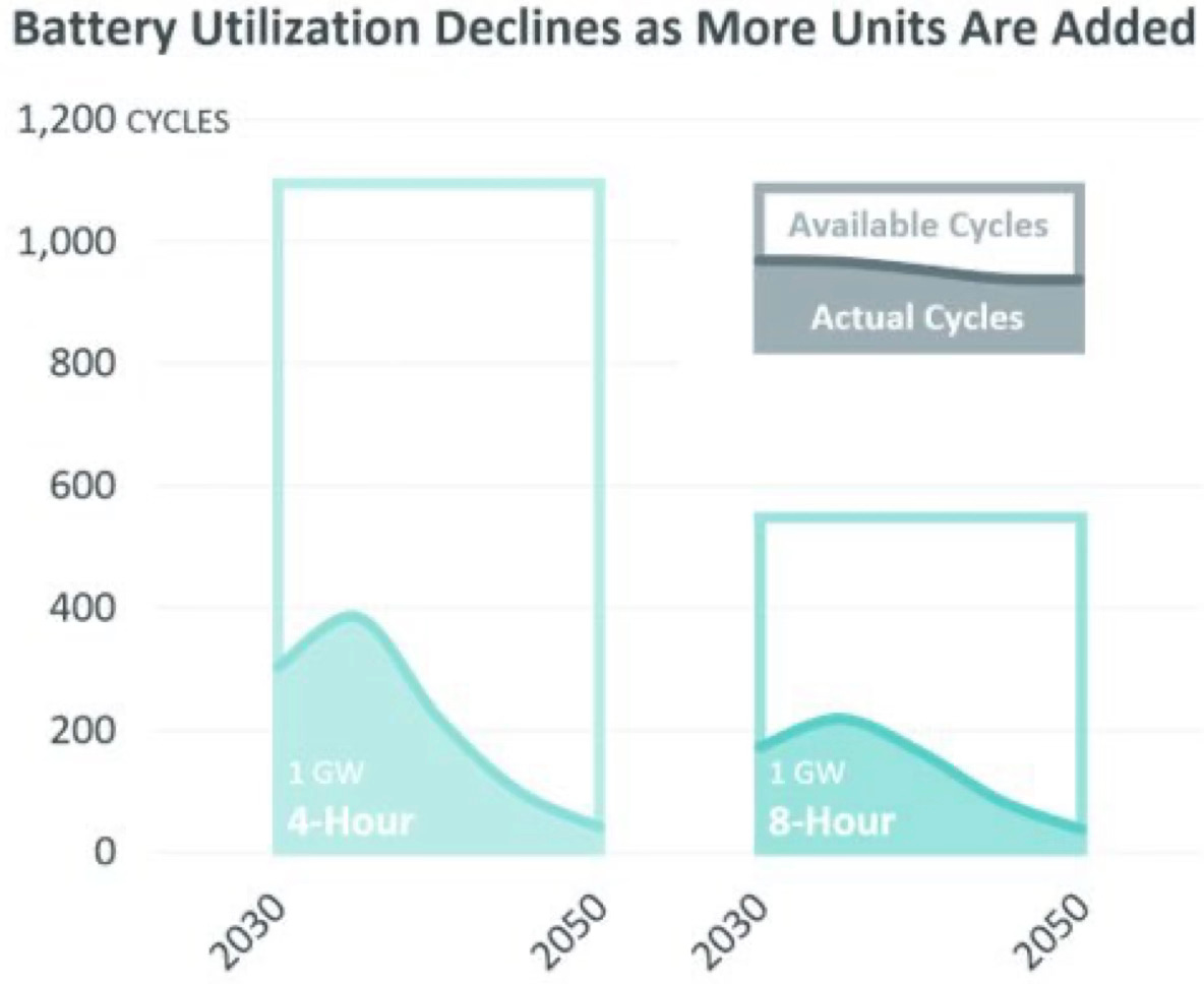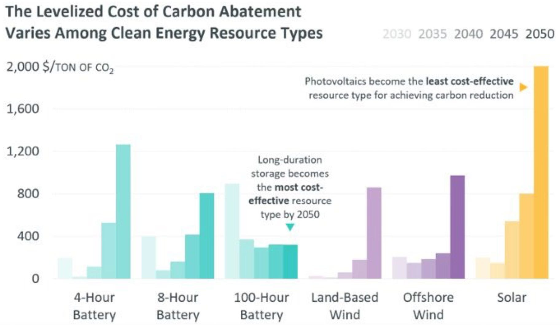 Right now, the utility industry is procuring two- and three-hour batteries. You, the reader, should think about four-hour batteries. By 2040, you ought to consider eight-hour batteries. By 2050, hundred-hour batteries will be the play. Yes, that growth in specification is exponential—ditto for generation capacity, transmission need, and ultimate cost as we approach net zero.