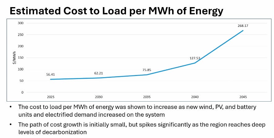 ISO-NE projects that from 2025, the price per unit of wholesale electricity—before distribution grid upgrades—will increase 2.3x by 2040, and 4.8x by 2045.